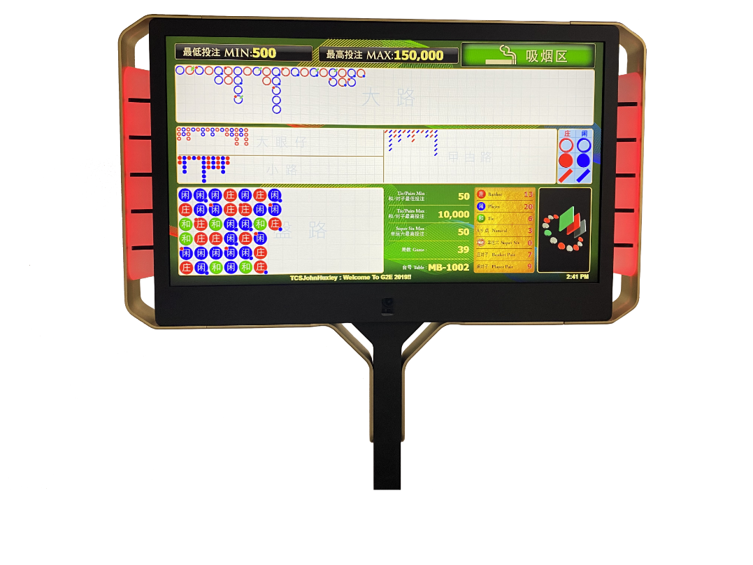 Ora Gem Winning Number Display is 27” double-sided landscape screen suitable for Baccarat, Poker, and Progressive games and available in a gold anodised finish.